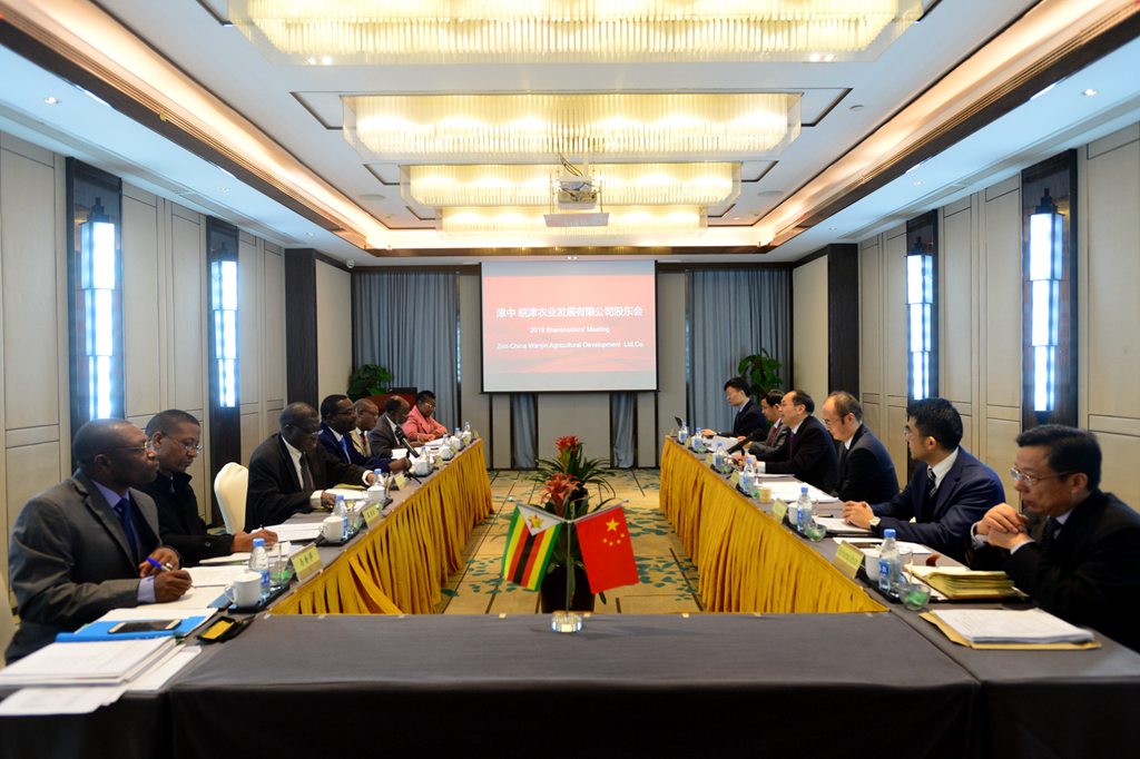 为进一步贯彻落实2017年皖津公司股东会决议,研究解决皖津项目面临的风险和问题,探索皖津公司今后发展的思路和项目,11月26日至30日,皖津公司2019年股东会董事会在合肥召开。安徽省农垦集团公司党委书记、董事长詹先豪,津巴布韦Firmus公司董事长马荣贵,农垦集团副总经理、皖津公司董事长陈仁虎及中津方股东董事代表参加或列席会议。