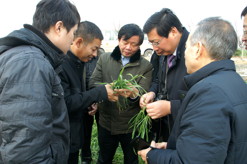 12月21日,安徽农大黄正来教授、省农科院汪建来研究员、蚌埠市农委李勇主任一行组成专家组,走进龙亢农场麦田观摩了小麦苗情和田间长势,副场长王永玖等陪同。
